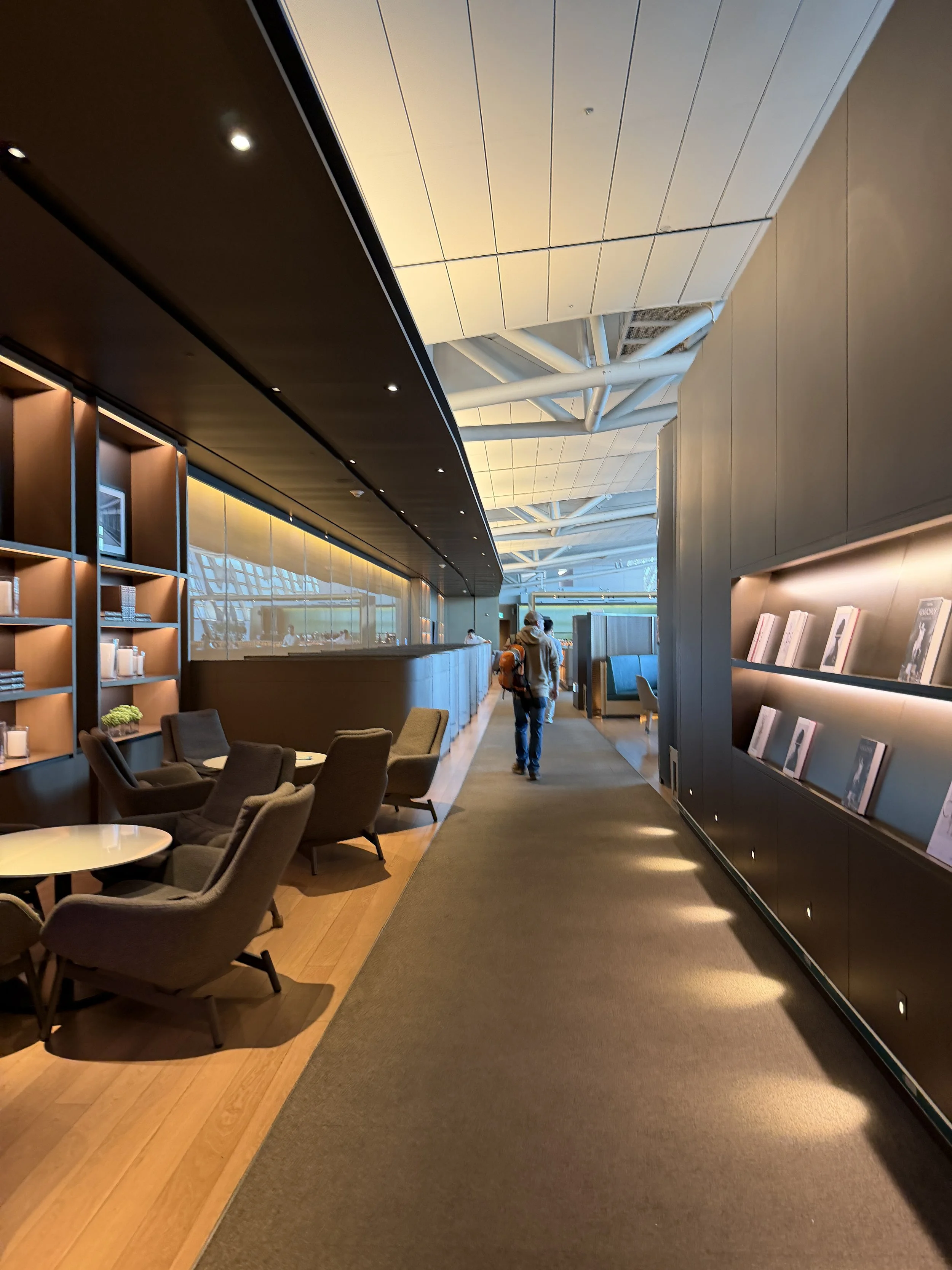 One thing I genuinely appreciated is that Asiana didn’t lean heavily into bold branding inside the space. Instead of saturating the lounge in airline colors, they opted for warm wood tones and beige marble finishes throughout. The result feels clean, not sterile, and warm.