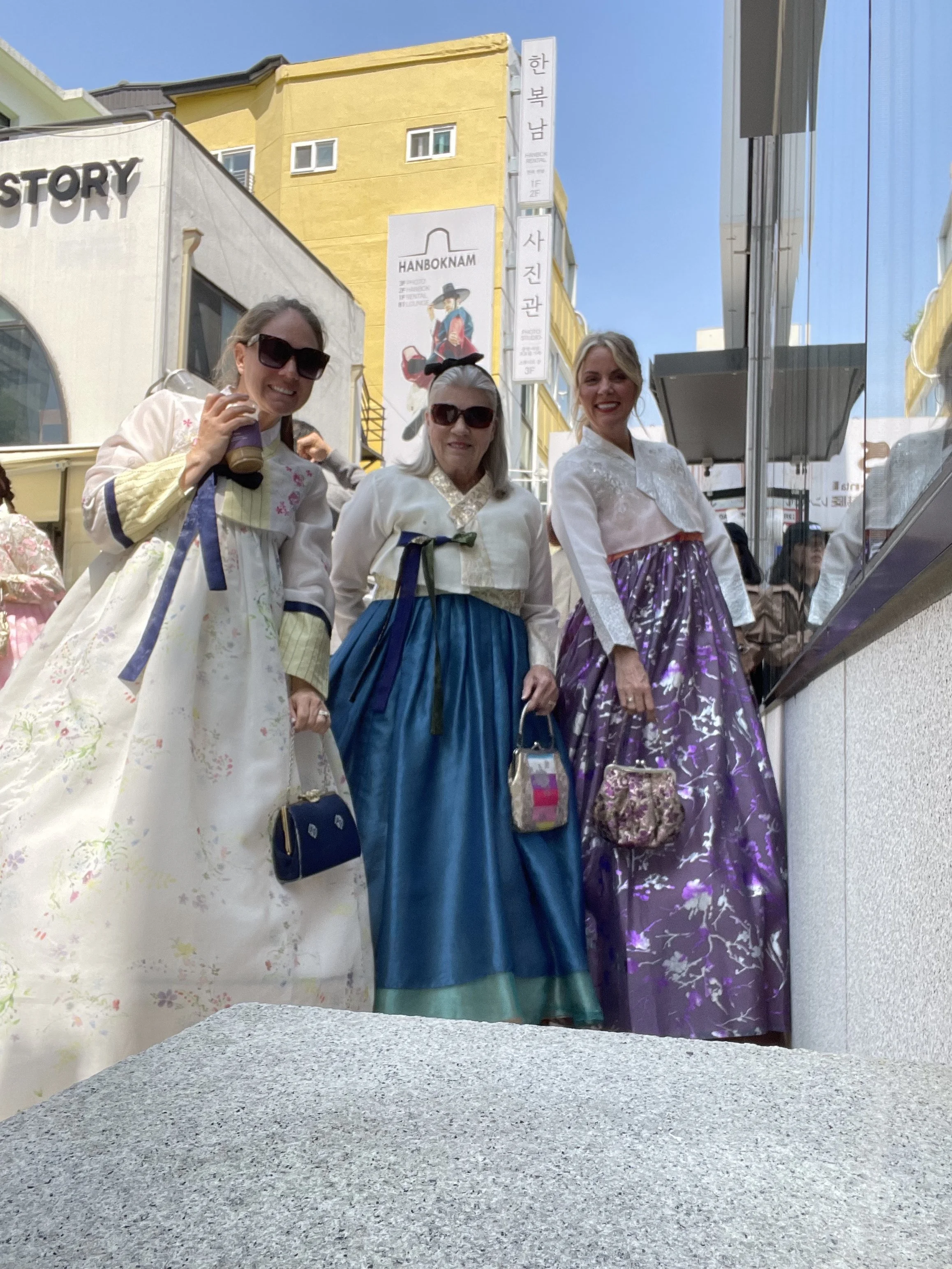 Me, my mom and my sister, Stacey, wearing hanbok to visit Gyeongbokgung!